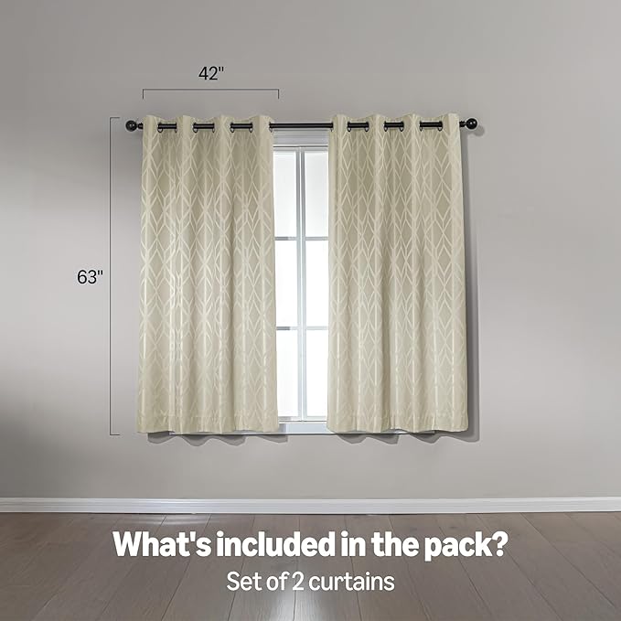 Amazon Basics Jacquard 2-Piece 100% Blackout Curtains, Living Room and Bedroom Drapes, Thermal Insulated Window Treatment, 42"x63", Beige