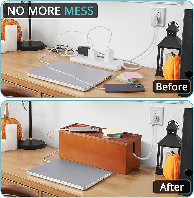 - Modern Farmhouse Decor: Designed with rustic look style, our cord organizer box will surely add a country and organized touch to your decor. This cord cover floor box will bring natural wood crafts and styles to our cozy places such as home, office area, and other decoration places.
