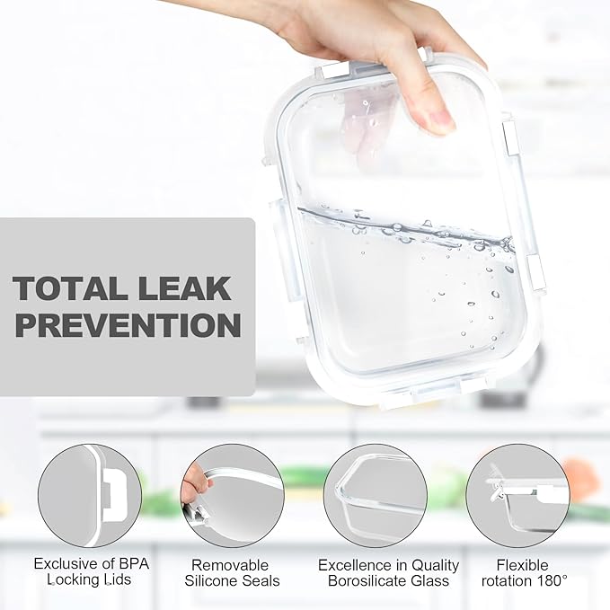 - SAFE & PORTABLE: Compared to ordinary plastic meal prep containers, our glass meal prep containers are non-toxic and long-lasting, won’t absorb food flavors, or stains, and make them easy to clean. Different sizes and shapes are great for various occasions and events.
