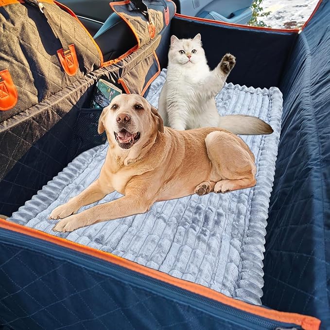 - 【SOFT & COZY】: This elegant non-slip dog bed mat is designed to fit most backseat car seat cover and backseat extenders, creating a luxurious and cozy riding space for your pet. The soft and skin-friendly furry surface gently protects your dog's skin and paws, Not only ensure your furry friend enjoys a relaxing and comfortable ride, but also protects your car back seats cover from scratches and stains, keeping your car clean and tidy.