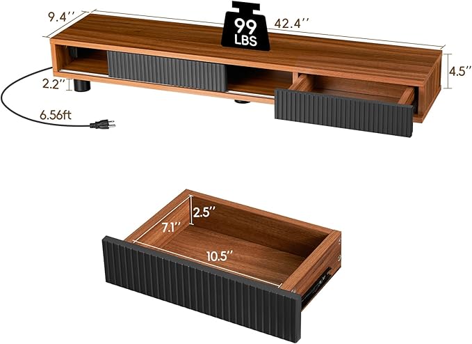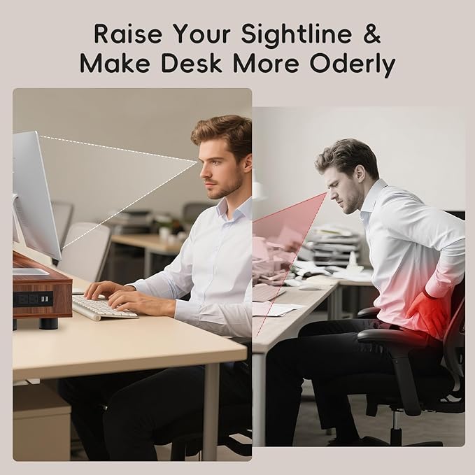 - 【Durable and Sturdy】- Made from high-quality wood, ensuring durability and sturdiness, holds up to 200lbs. Provides stable and durable support for your monitors and office equipment. The unique walnut texture adds a touch of elegance to your workspace.
