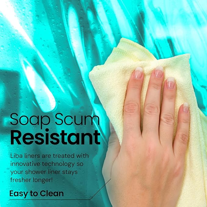 - CLEAN & ELEGANT DESIGN - Measuring 72" x 72", the LiBa plastic shower curtain fits any standard-size shower or tub, whether you have a straight or curved shower rod! Light filtering through the green shower curtain creates a refreshing mint green that's truly delightful. Our clear shower curtain liner is easy to wipe clean, saving you time and effort!