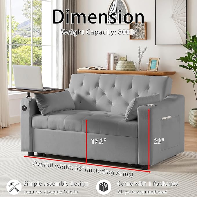 - 3-in-1 Multifunctional Design: Easily switch from a cozy loveseat to a twin bed using the simple pull mechanism. This multifunctional design offers a practical solution for hosting overnight guests, making it an excellent choice for small apartments or multi-use spaces.