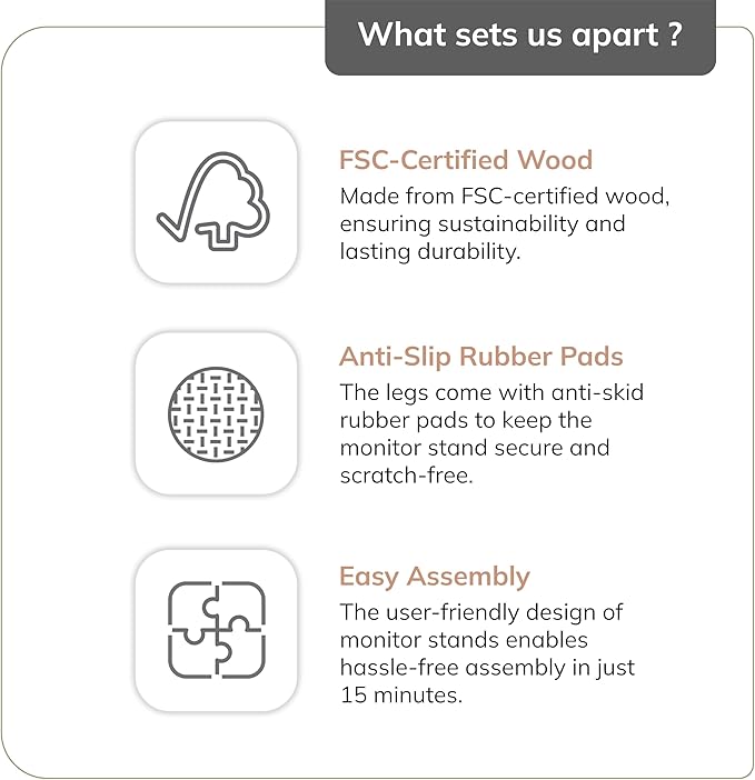 - Space-Saving Design: Optimized for efficiency, this monitor stand wood maximizes desk space. It functions as a computer monitor stand for desk and computer risers for desk monitors, providing ample room for accessories and enhancing desk organization.