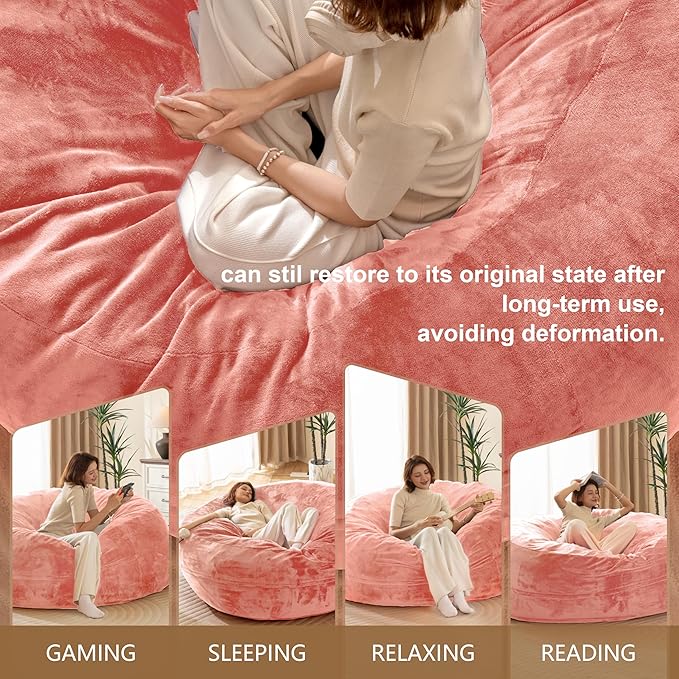 Bean Bag Chair for Adults,6FT Oversize Floor Bean Bags Offers Ample Space for Adults,Memory Foam Giant Bean Bags,Lounger Versatile Design Suits Any Room,Movie Nights,Reading (Pink, 6FT)