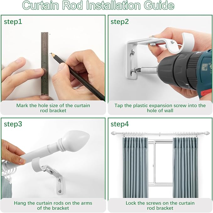 - EASY INSTALLATION: Single curtain rod package include one telescoping curtain rod comes complete with all the hardware needed for easy set-up, brackets, screws, anchors and instructions