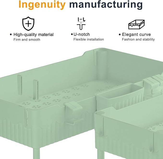 - 【Easy to install and clean】No tools are needed,under kitchen sink organizers and storage can be easily installed according to the instructions. The basket of the shelf is hollow, which will not cause water accumulation. Kitchen organizer use high-quality material, just wipe the surface with a damp cloth can make it look new.