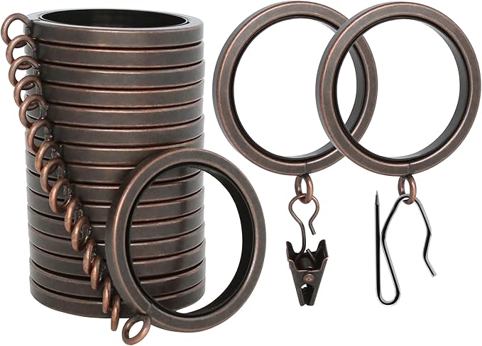 BlastHome® Luxury Curtain Rings - Premium Metal with Quiet, Smooth Nylon Inserts - Pinhooks and Clips Included - 1 1/2" Inside Diameter - 18 Rings for Two Standard Curtains - Oil Rubbed Bronze