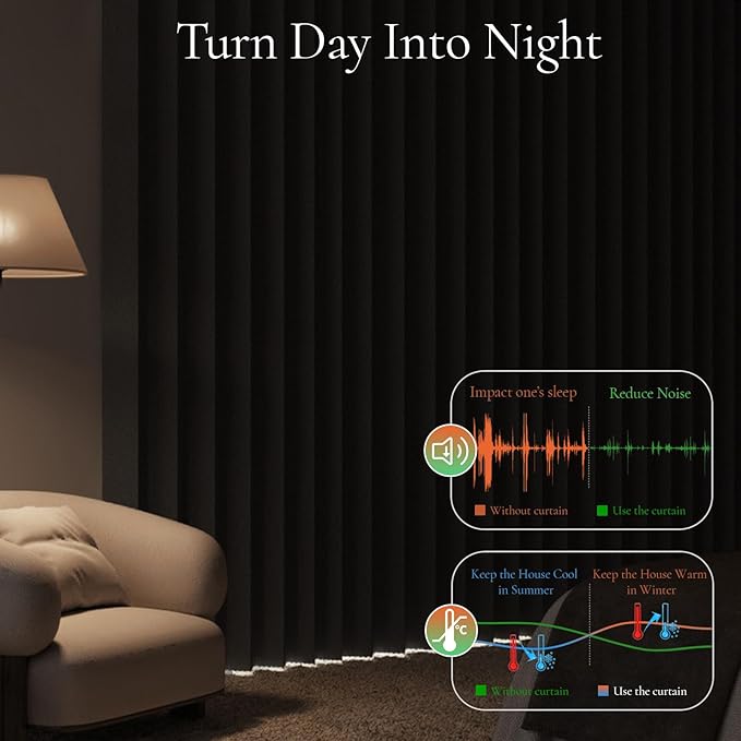 - 100% Full Blackout: Effectively blocks sunlight and harmful UV rays while providing insulation, noise reduction, and total privacy. Ideal for night-shift workers and light-sensitive sleepers.