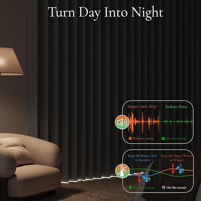 - 100% Full Blackout: Effectively blocks sunlight and harmful UV rays while providing insulation, noise reduction, and total privacy. Ideal for night-shift workers and light-sensitive sleepers.