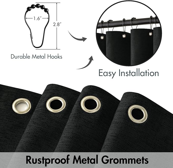 - Package Includes - Comes with 1 faux linen shower curtain featuring reinforced metal holes and 12 bonus metal hooks, rust resistant and easy to slide. You will enjoy the added convenience of these bonus hooks while saving on the cost and effort.