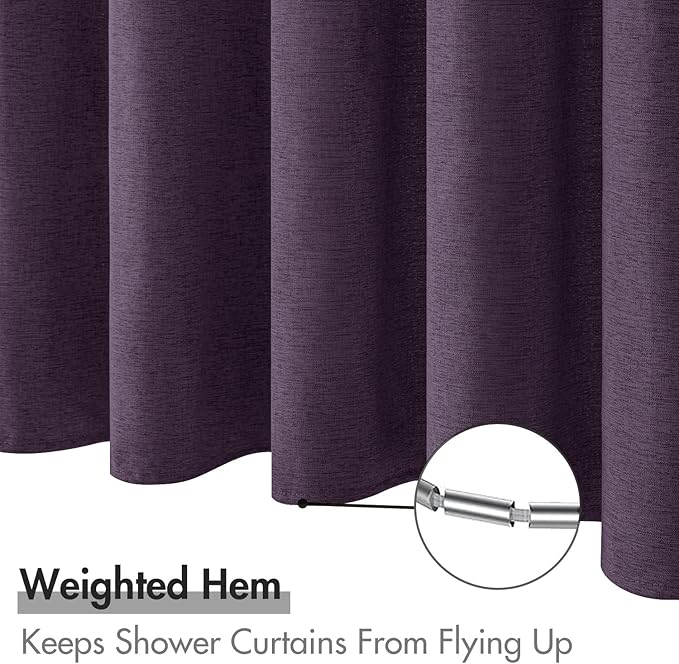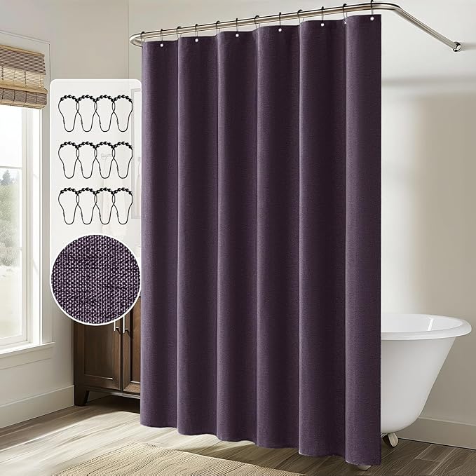 MIULEE Extra Long Linen Shower Curtain 84 Inch Long with 12 Metal Hooks Washable Heavy Fabric Curtain Set Waterproof Thick Cloth Shower Curtains for Bathroom Hotel Bathtub,72 x 84,Purple