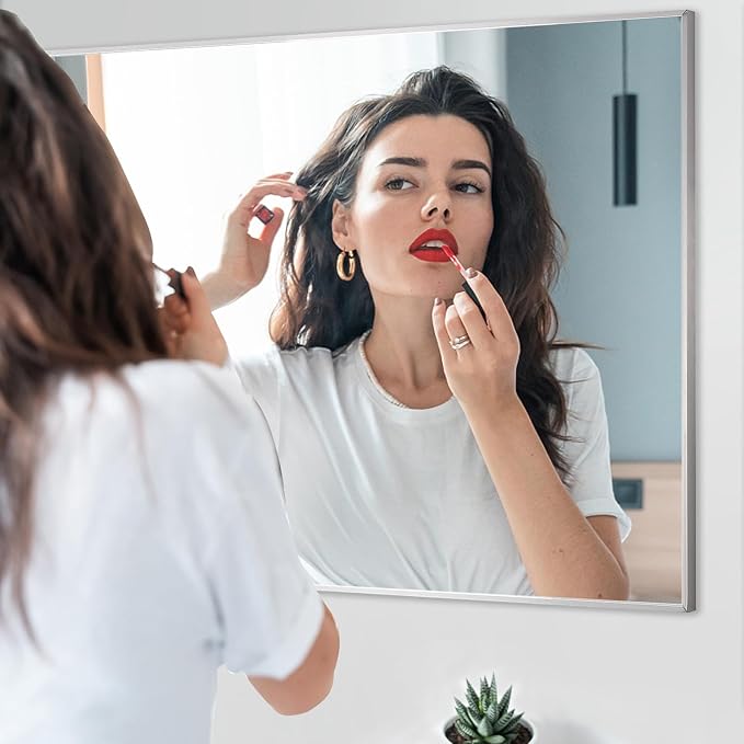 - 【Aviation-Grade Al Alloy Frame】 - The frame of this shatterproof mirror is crafted from aviation-grade aluminum alloy, ensuring rust resistance, durability, and a longer lifespan than plastic or regular metal frames. With its modern design, it also makes a stylish entryway mirror, adding sophistication to any space.