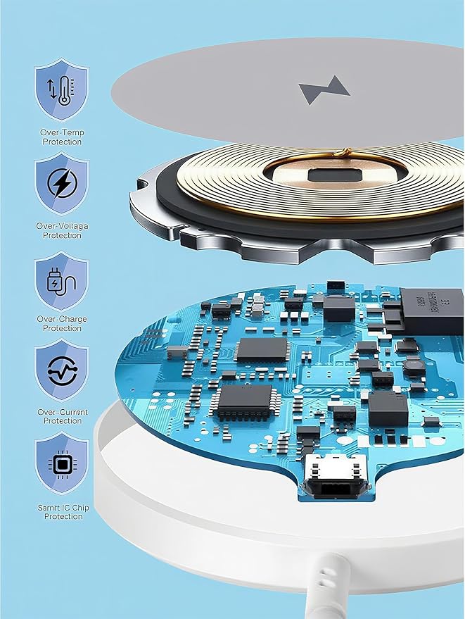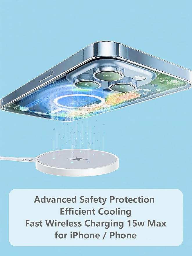 - 【15W Fast Charging + All-Round Safety Protection】: This magnetic wireless charger delivers a robust 15W output to cut your charging time in half compared to basic chargers—perfect for powering up your iPhone wireless charger (iPhone 17/16/15/14/13/12 series) before work or a trip. Built with over-current, over-voltage, over-temperature, and short-circuit safeguards, it prevents overheating and damage, keeping your devices and home safe