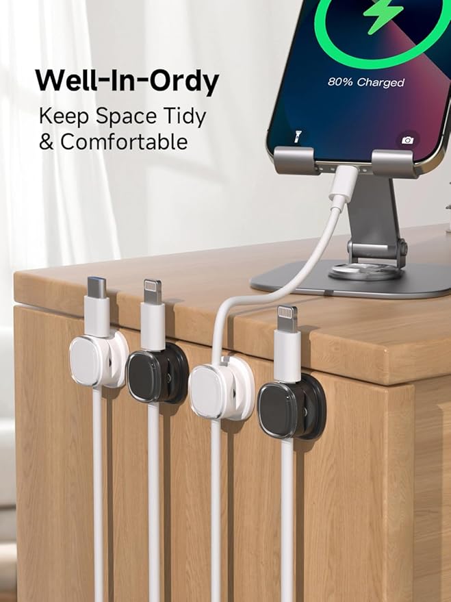 - Hold Most Cords: Diameter of about 0.3 inch (7.5mm) allows to hold most cords, such as Type-C charger cords, lightning cords, HDMI cords, USB cables, PC Notebook power wires, network wires, mouse cords, keyboard cables, headphone cords