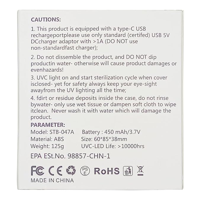 - C port Charging: The toothbrush cleaner uses C charging port, which is suitable for most charging cables, and can be used for more than 30 days after charging for 1.5 hours. The small indicator light next to the charging port is a power indicator, when you see it flashing, it means you need to charge it, the indicator light will stay on red after the full charge to remind you to unplug the charging cable