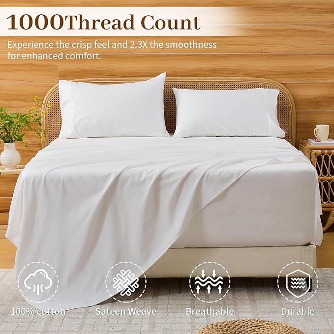 - All Night Comfort:Experience ultimate comfort and luxury with Bedlifes cotton sheets, crafted from 1000 TC Sateen Egyptian cotton for a soft and smooth feel;Our luxury cooling sheets are not only cooling but also feature combed cotton, which filters out impurities and dirt for long-lasting durability;Enjoy breathable, low-shrinkage sheets that resist pilling and fading for an unparalleled sleeping experience