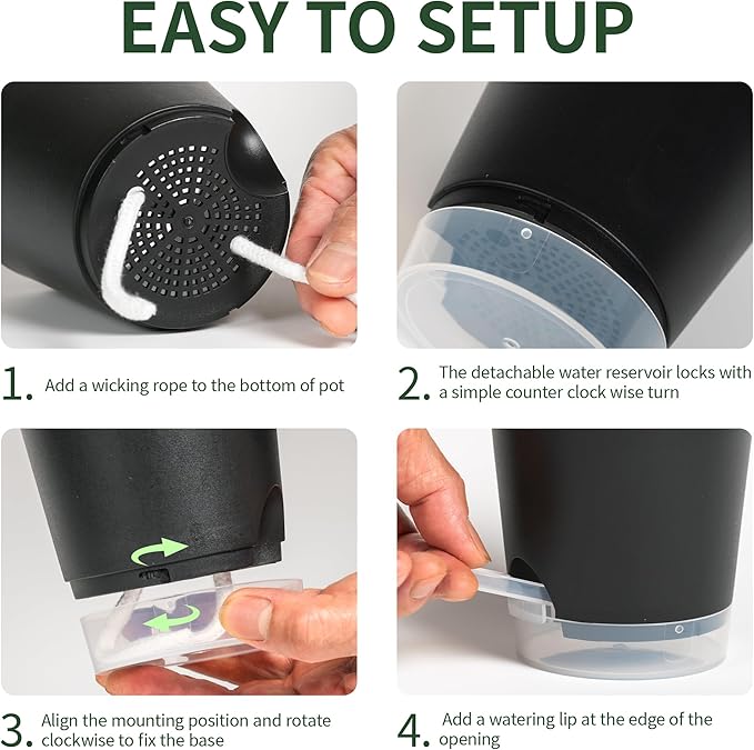 - Efficient Self-Watering System: Featuring a built-in wick rope, these 4 inch plant pots automatically supply water directly to the plant roots, reducing the need for constant watering. Perfect for busy plant owners or those with a hectic schedule.