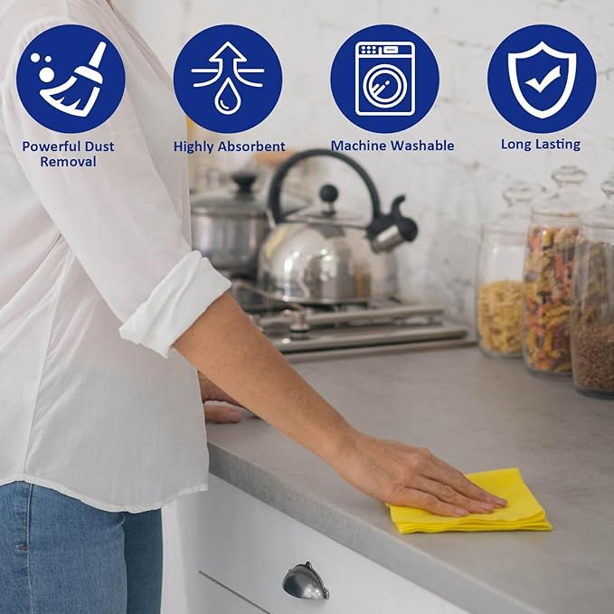 - Highly Absorbent & Durable: Designed to absorb up to 8 times their weight in liquid, these cloths quickly soak up spills, dry surfaces, and polish with ease. Reinforced edges provide durability for hundreds of uses without fraying or tearing.