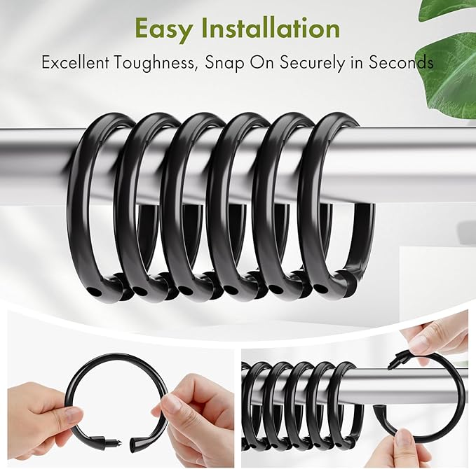 - Easy Installation: With high toughness and a snap-on design, these plastic shower rings firmly attach to any standard shower rod in seconds