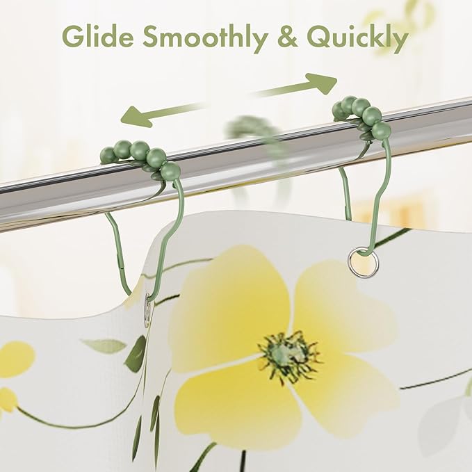 - Free gliding action - No snagging; no effort; no hassle. These shower hooks for shower curtain feature specially engineered spherical balls to reduce friction and allow effortless gliding across the rod with virtually no effort at all.