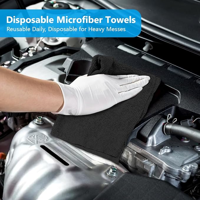 GLIMGLINT Microfiber Cleaning Cloth, 100 Pack Shop Towels, Lint-Free, Ultra Absorbent Reusable or Disposable Microfiber Cloths for Kitchen, Car, Cleaning Rags, 11" x 9", Black