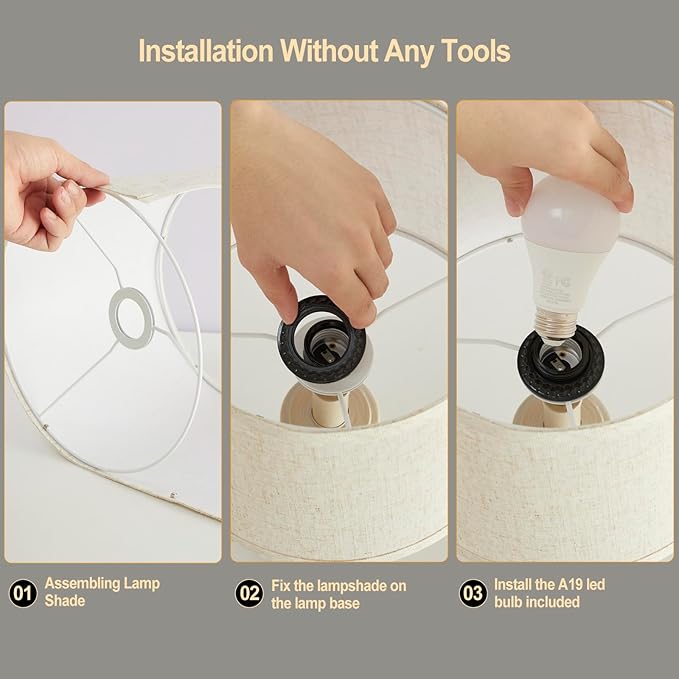 - 2 LED Bulbs Included: The package contains 2 x 9W variable three color temperature LED bulbs. Energy efficient and stable. The lamp base of this table lamp is E26 base, you can install any type of LED bulb with E26 base up to 60W for it. This nightstand lamp can meet the needs of various usage scenes.