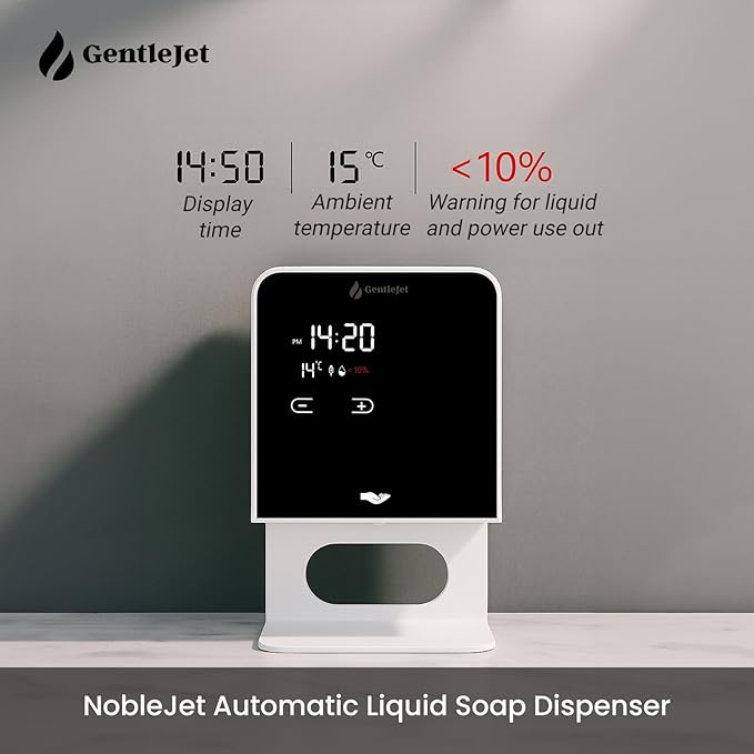 - Smart LED display - This auto soap dispenser touchless model features a built-in screen that displays time, room temperature (°F/°C), and alerts for low soap and low battery - keeping you informed at a glance.