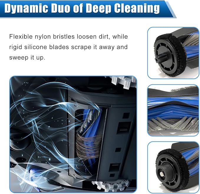 - 【MULTI-SURFACE CLEANING】 Designed for hardwood, tile, and carpet, this multi-surface rubber brush with flexible nylon bristles captures fine dust, debris, and pet hair, delivering deeper cleaning results while keeping noise levels low. Compatible with Ecovacs Deebot X11/X9/X9 Pro/T50 Max.