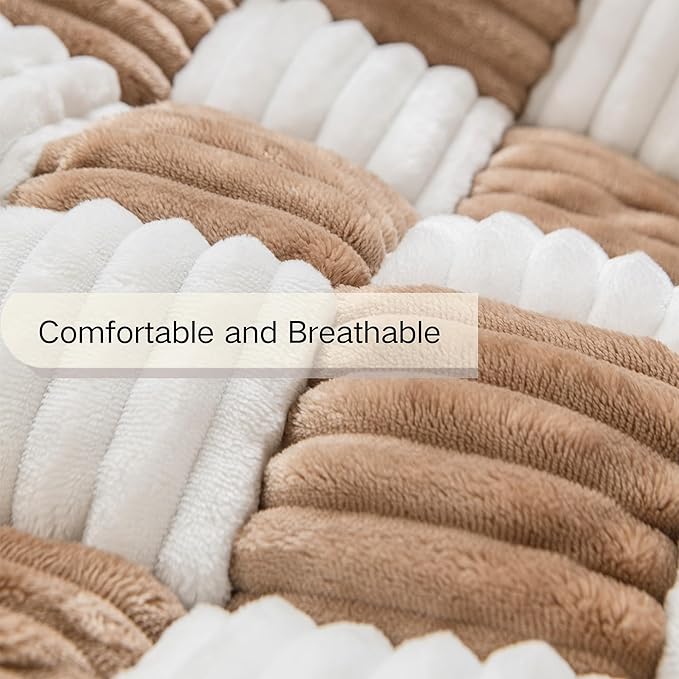 Couch Covers for Dogs and Cats, Fuzzy Dog Sofa bed with Cream Square Plaid, Plush Pet Couch Cover Bed, Thickened Quilted Furniture Protector Mat for Large Medium Pets (Light Brown 35.43"*35.43")