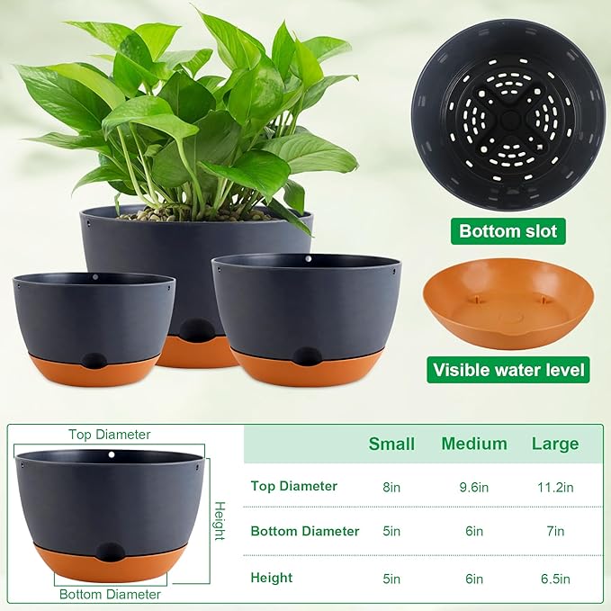- 【Three Sizes to Meet Multiple Needs】Self watering pots for Indoor outdoor plants includes 12/10/8 inches, three sizes to choose from, and perfect for flower succulents, ivy, herbs, ferns, or other plants. these flower Pot offer generous space for your greenery.Good for creating eye-catching botanical arrangements.
