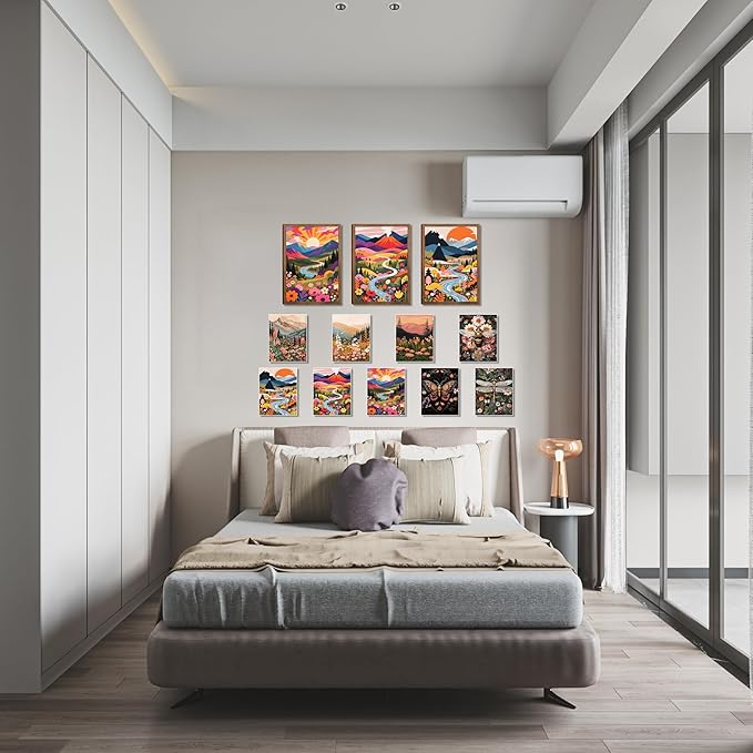 - 🌸 【Bonus 9 Prints Included】 Comes with 9 unframed 8x10 inch art prints featuring mountains, flowers, bees, butterflies, and dragonflies—perfect for collage or mix-and-match décor.