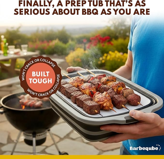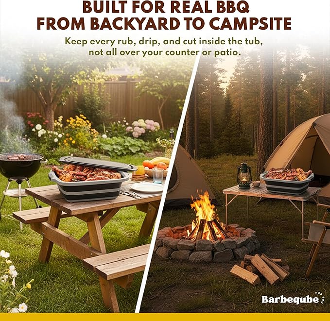 Collapsible BBQ Prep Tub XL with Locking Lid & Cutting Board - Pro-Grade Silicone Grill Station for Brisket, Ribs, Meal Prep - Space-Saving Portable Container for Camping, Tailgating & Outdoor Cooking