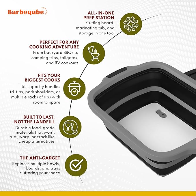 - PRO-GRADE CONSTRUCTION THAT WON'T LET YOU DOWN - Reinforced food-grade silicone walls resist punctures and splits unlike flimsy competitors that fail after 2 uses. Engineered base prevents catastrophic collapse. Built for serious pitmasters preparing brisket, pork shoulders, and ribs, not lightweight kitchen tasks. This is the last prep tub you'll ever buy.