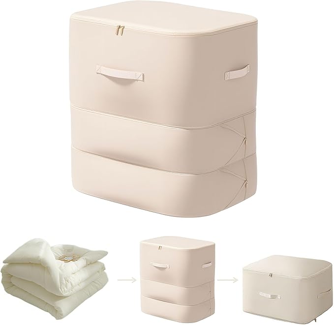 1PC Comforter Storage Bag, 3-Layer Zipper Blanket Storage Bag, Ultra Space Saving Self Compression Storage Bags for Comforters, Clothes, Pillows, Duvet and Bedding Sets (Beige, X-Large)