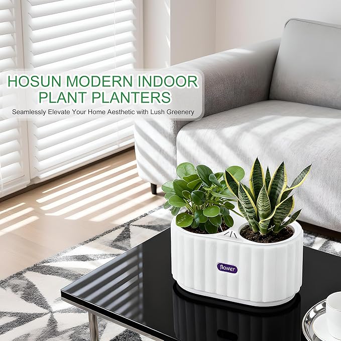 - 【Dual Compartment Design】Grow two plants simultaneously—such as compact cacti, plump succulents, fresh aloe vera, or delicate African violets—in one stylish HOSUN pot. Ideal for maximizing greenery in small indoor areas or adding variety to patio/lawn decor.