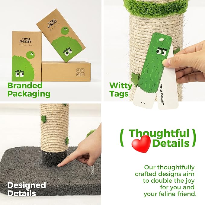 - Premium Materials: Crafted from 100% natural sisal rope and built on a heavy-duty MDF base, our scratching post combines durability with comfort. The soft plush-covered platform doubles as a resting spot, making this modern cat scratcher both functional and stylish. Its strong structure ensures stability, making it a reliable choice for indoor cats of all sizes.