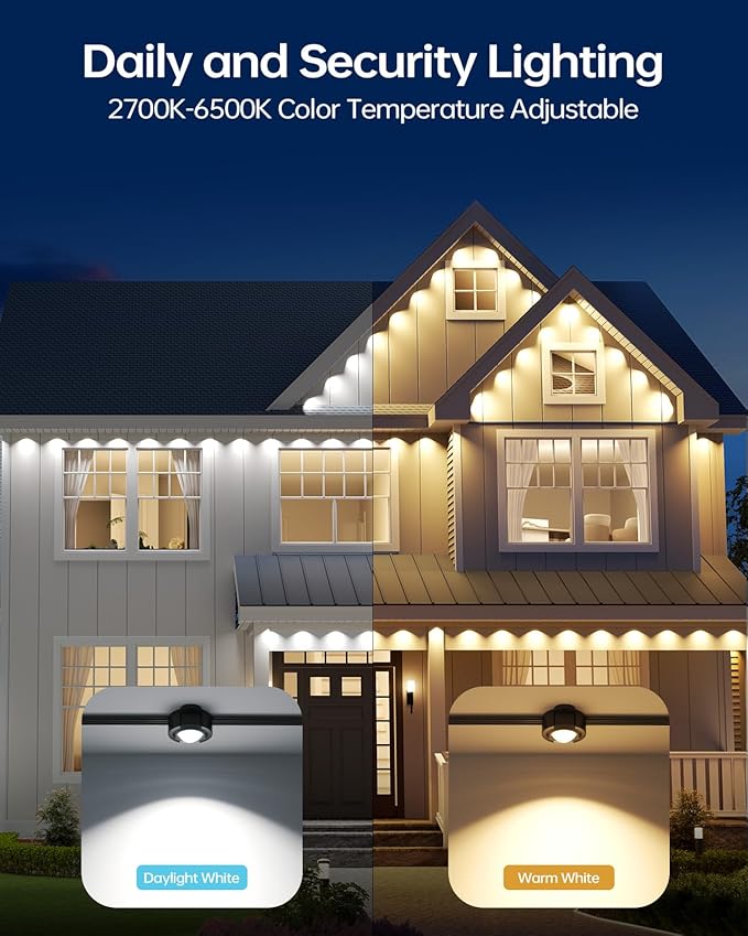 - 【Smart APP & Voice Control】Pair permanent outdoor lights with Alexa & Google Assistant for smart voice control. Use ASAHOM App to independently control each light, deliver warm white and cold white lights, set timer, cycle through different lighting effects, control the lighting speed, set light sequence and run 23 music modes for holiday party and accent lighting.