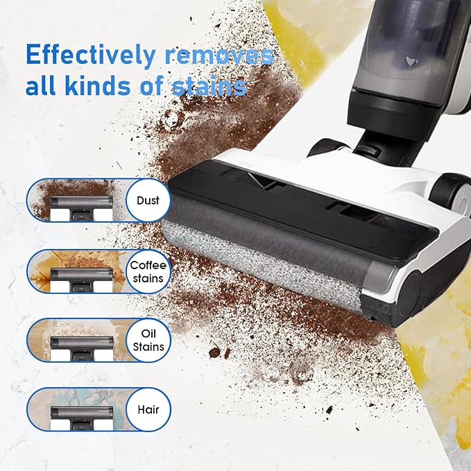 - Premium Materials: Our brush rollers are made of High-density microfiber soft flannelette, which has strong water absorption and can vacuum and clean simultaneously, also suck back large particles and liquid. It efficiently cleans stubborn stains, absorbs pet hair, dirt, dust and debris on the floor. No water stains