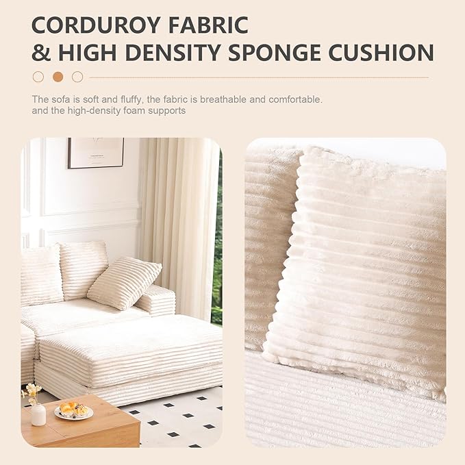 - Luxurious Corduroy Fabric: Crafted from plush and breathable corduroy fabric, this modular sofa is soft to the touch and offers a tactile delight. Its luxurious texture enhances the aesthetic appeal of your living area, while its durable nature ensures long-lasting comfort. This fabric choice perfectly combines elegance and functionality for a stylish home.