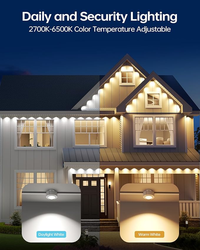 - 【Smart APP & Voice Control】Pair permanent outdoor lights with Alexa & Google Assistant for smart voice control. Use ASAHOM App to independently control each light, deliver warm white and cold white lights, set timer, cycle through different lighting effects, control the lighting speed, set light sequence and run 23 music modes for holiday party and accent lighting.