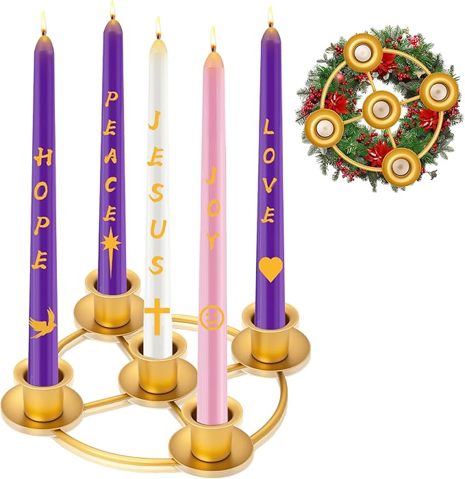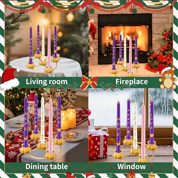 - Versatile Festive Decor: The advent candle holder w/ 5 taper candle perfect for enhancing the Christmas spirit on tabletops, mantels, windowsills, or desks. Its warm glow makes it a cozy addition to homes, churches, offices, holiday parties, and other festive gatherings throughout the Advent season.