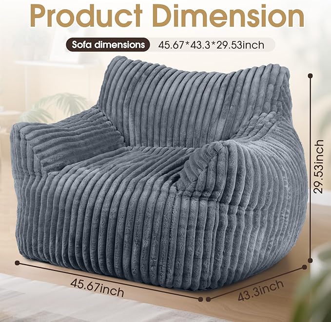 - Built to Last: This comfy bean bag couch constructed with durable corduroy fabric, reinforced stitching and anti-slip bottom, this chair is designed to withstand daily use without showing wear and tear.