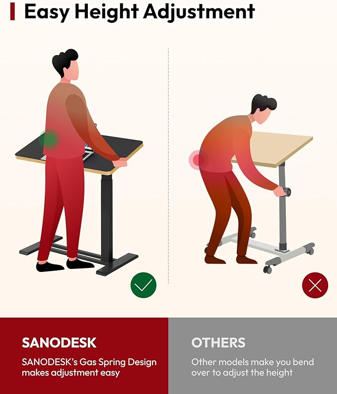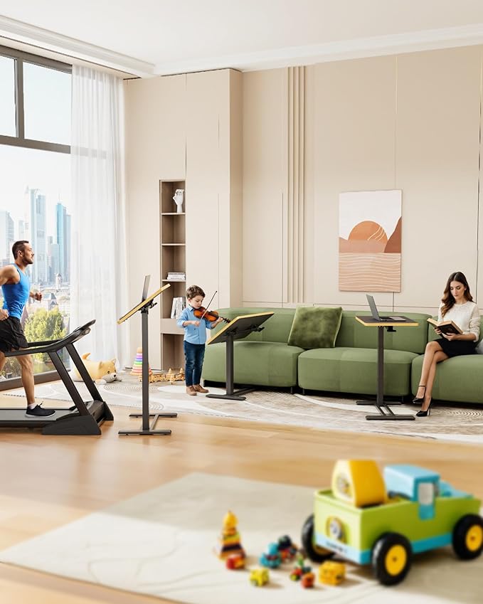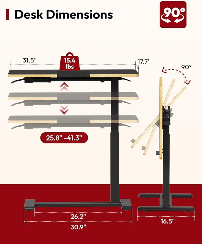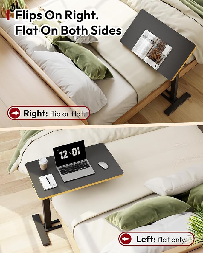 - Effortless Height Adjustment with Gas Spring System:Adjustable Overbed Table with built-in gas spring pneumatic lift (25.8"-41.3") enables smooth, single-handed height control. Perfect as a Mobile Standing Desk or adjustable desk – eliminate bending or force for ergonomic work near beds, sofas, or recliners.