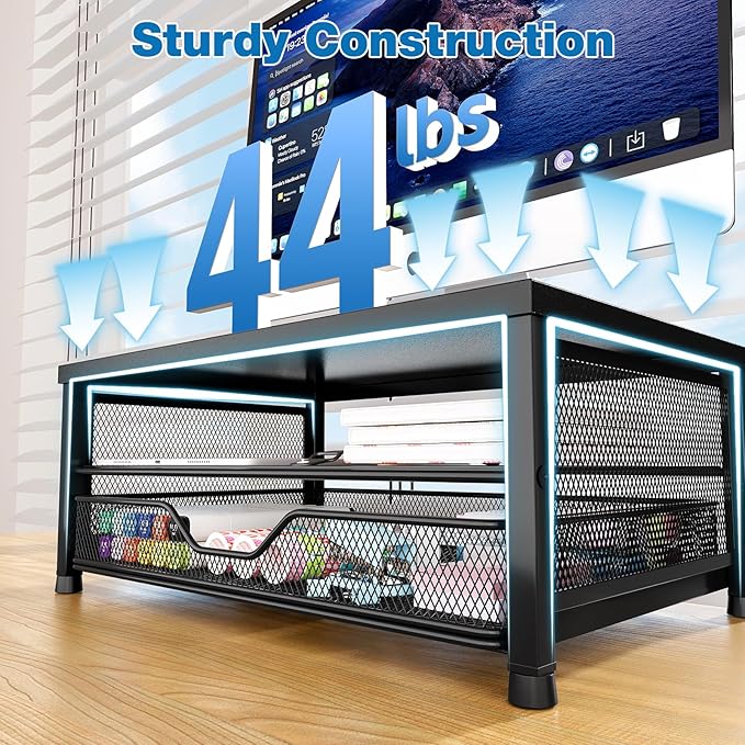 - 【Modern Aesthetic】With its simple and stylish design, this monitor stand not only organizes your workspace but also enhances the overall style. It blends perfectly with any office decor, adding elegance while enhancing functionality