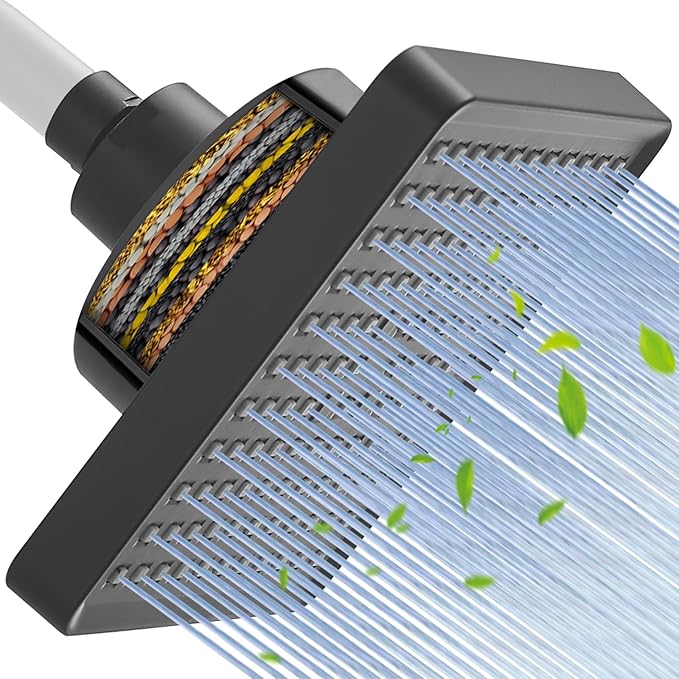 Hoimpro Filtered 6 Inch Square Shower Head High Pressure Bathroom Rain Showerhead Filter for Hard Water to Remove Chlorine and Harmful Substances, Replacement filter Matte Black