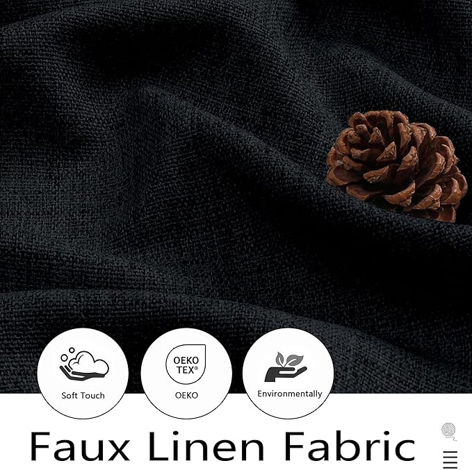 Black Kitchen Curtains 30 Inch Length 2 Panels, Light Filtering Farmhouse Linen Textured Small Short Curtains Over Sink, Half Curtain Tiers for Cabinet Bathroom Cafe Basement, 30Wx30L Inch