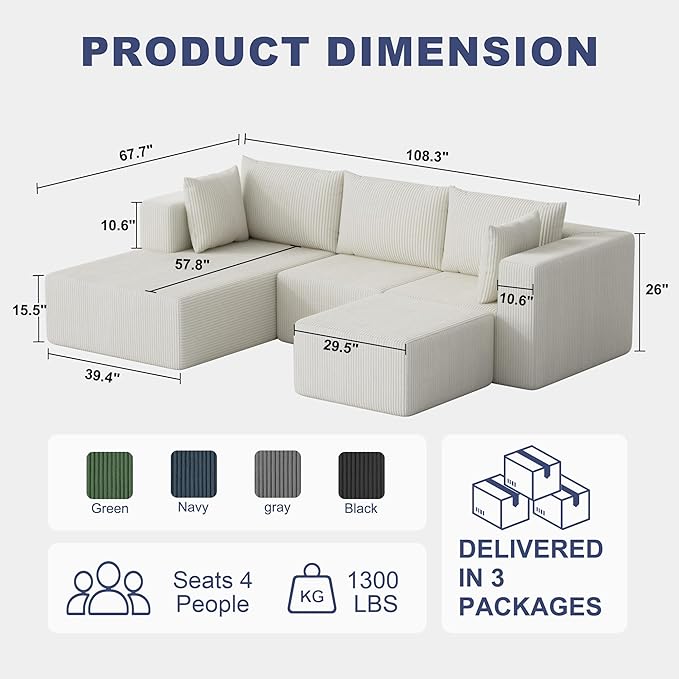 - Modular Flexibility:This one-piece sectional adapts to your lifestyle. Use it solo, pair with footstools, or combine with other modules to expand. Ideal for living rooms, apartments, and open spaces alike.