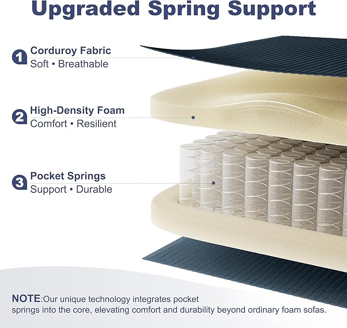 - Premium Corduroy:Wrapped in 380g/m² fine-rib 2.5mm corduroy, the fabric feels soft, matte, and incredibly dense. It resists fading, pilling, and rough textures, making it ideal for families, pets, and stylish interiors.