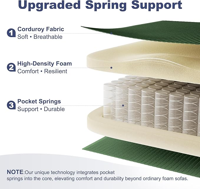- Premium Corduroy:Wrapped in 380g/m² fine-rib 2.5mm corduroy, the fabric feels soft, matte, and incredibly dense. It resists fading, pilling, and rough textures, making it ideal for families, pets, and stylish interiors.